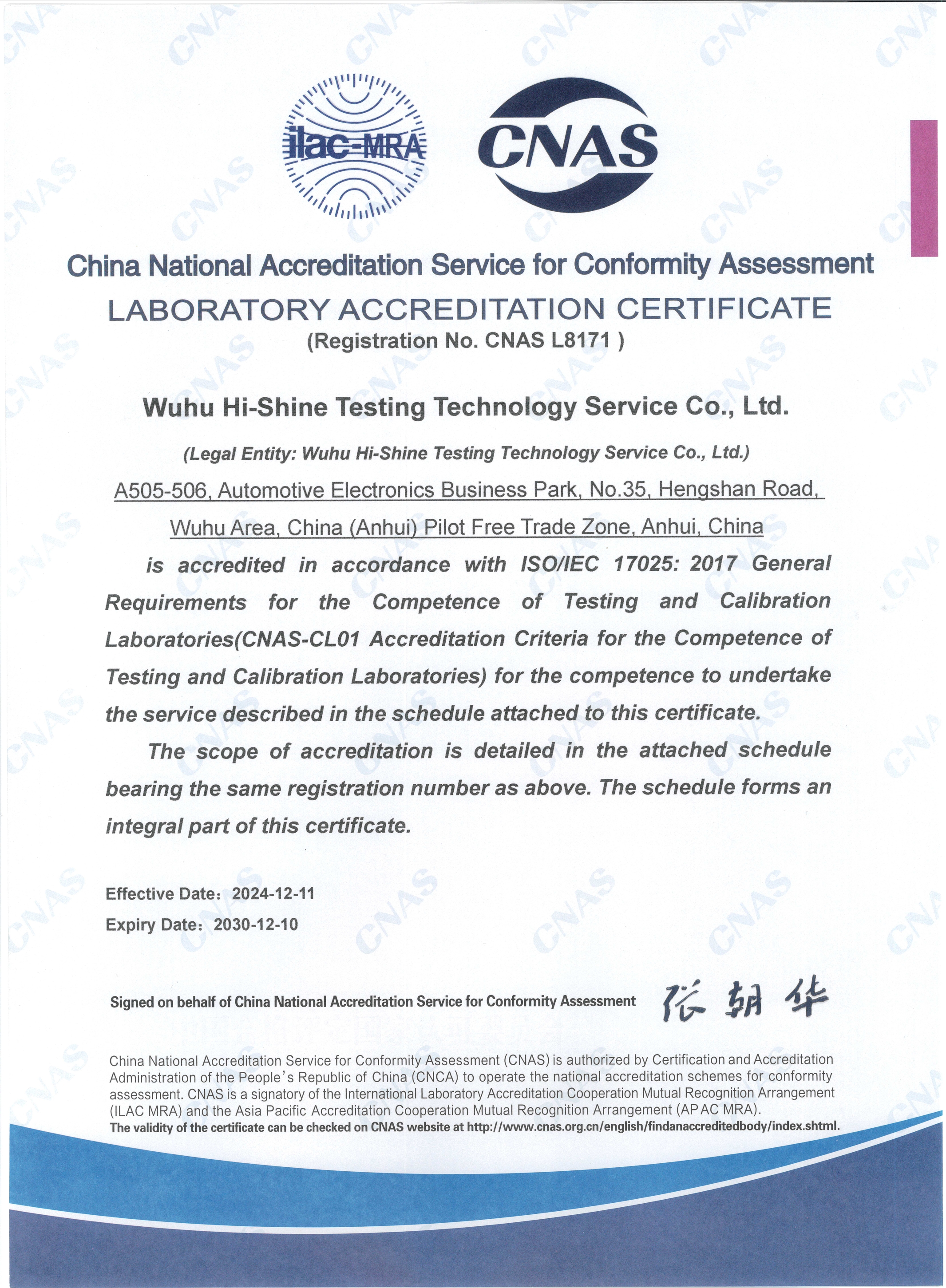 蕪湖衡信于2015年11月通過了中國合格評定國家認可委員會(CNAS)的校準和檢測實驗室認可(證書號:CNAS L8171),現(xiàn)有CNAS認可校準能力220項,可在幾何量、熱學、力學、電學、化學等多個領域為廣大企事業(yè)單位提供第三方計量校準技術服務。
